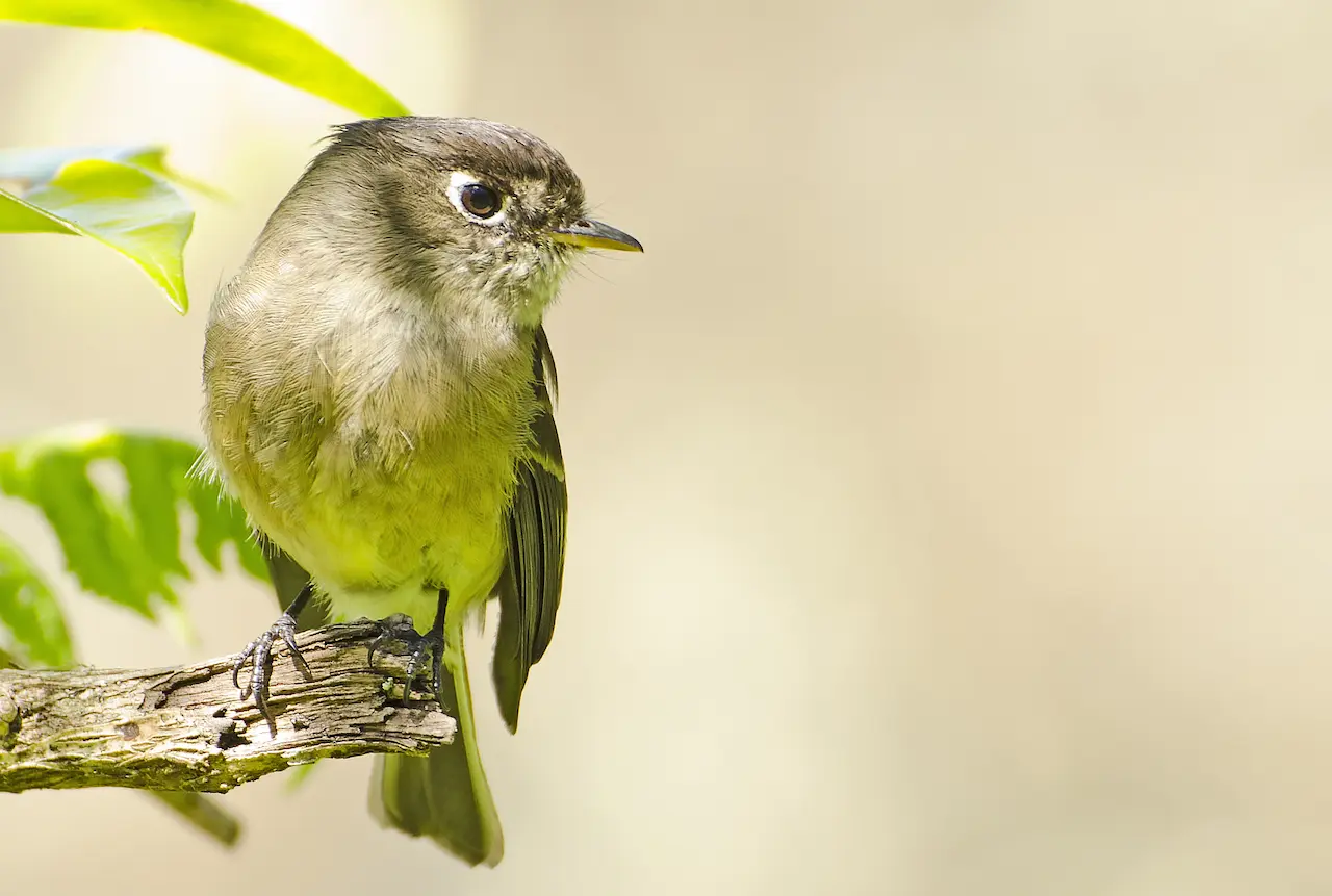 The black cap and rear of the neck are the most distinguishing features of this species. The dark cap contrasts with the lighter body plumage, helping to distinguish this species from other Empidonax Flycatchers. The eye is surrounded by a broad white ring, but it is broken above. This creates a distinctive facial pattern which is especially helpful for identification.