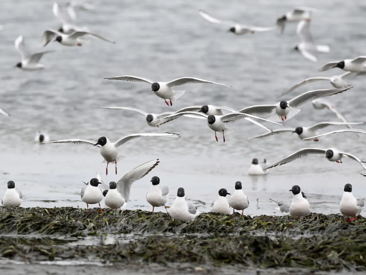 The Bonaparte’s Gulls, Larus Philadelphia, are small, migratory gulls that often move east or west to coastal waters, such as the Great Lakes. They are rare vagrants in Western Europe.