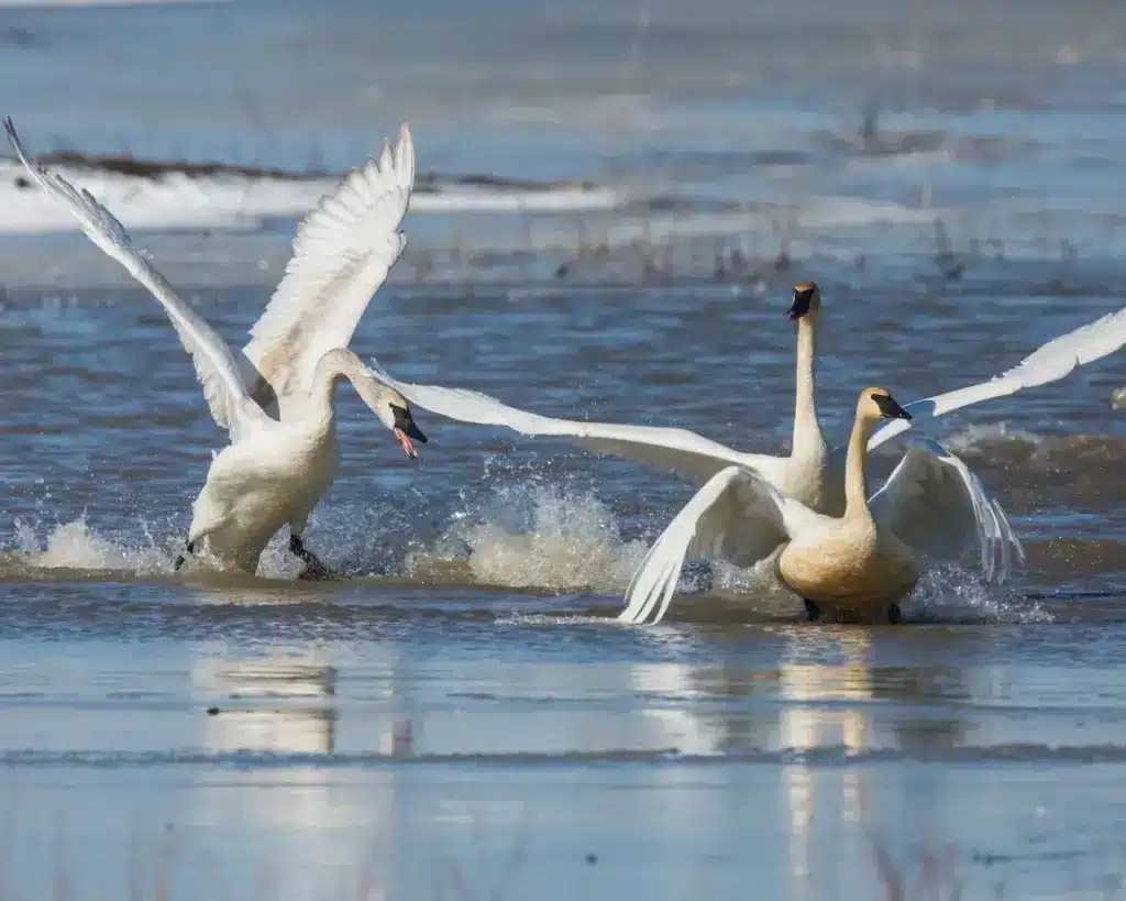 Emperor Geese migrate much shorter routes than Tundra Swans or Snow Geese, who undertake massive, continent-spanning migrations. The Emperor Geese migrate less than 1,000 miles between their breeding grounds and wintering areas. They follow traditional coastal routes along the Bering Sea and the Aleutian Chain.