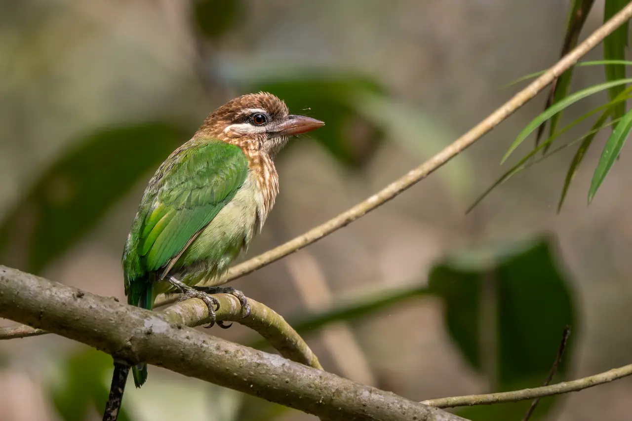 The White-cheeked Barbet is an endemic forest bird of southern India. Its distinctive plumage, loud calls, and ecological role as a seed disperser make it a familiar sight in the wooded landscapes of the Western Ghats. This species, which is known for its bright green plumage and loud, repetitive calls and plays an important ecological role in dispersing seeds, can be found throughout the Western Ghats, as well as surrounding hills. The White-cheeked Barbet is often hidden among the foliage but becomes more noticeable during breeding season, when its vocalizations dominate the forest sounds.