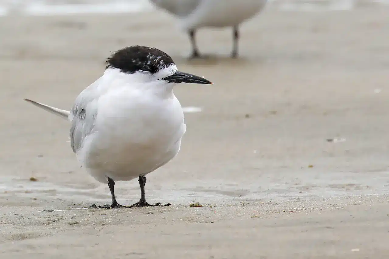 The body of the tern is mostly white. Its wings and back are a light grey. This tern’s long, pointed tail and wings are essential features for performing acrobatics when hunting. The long, slender bill is perfectly adapted to catching fish.